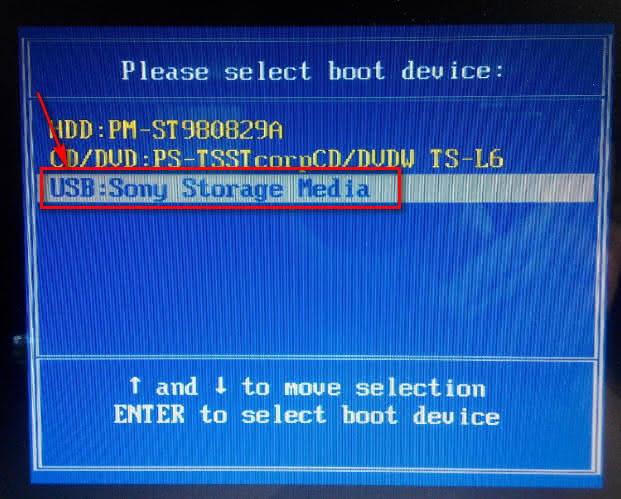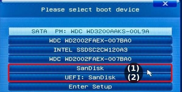 - 關機。 插入隨身碟。 開機, 並且馬上開始按