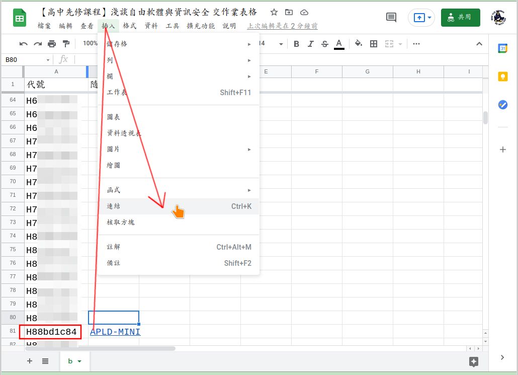 這裡以老師的名字為例: 「洪朝貴」 的 sha256sum 的前幾位是 88bd1c84 。